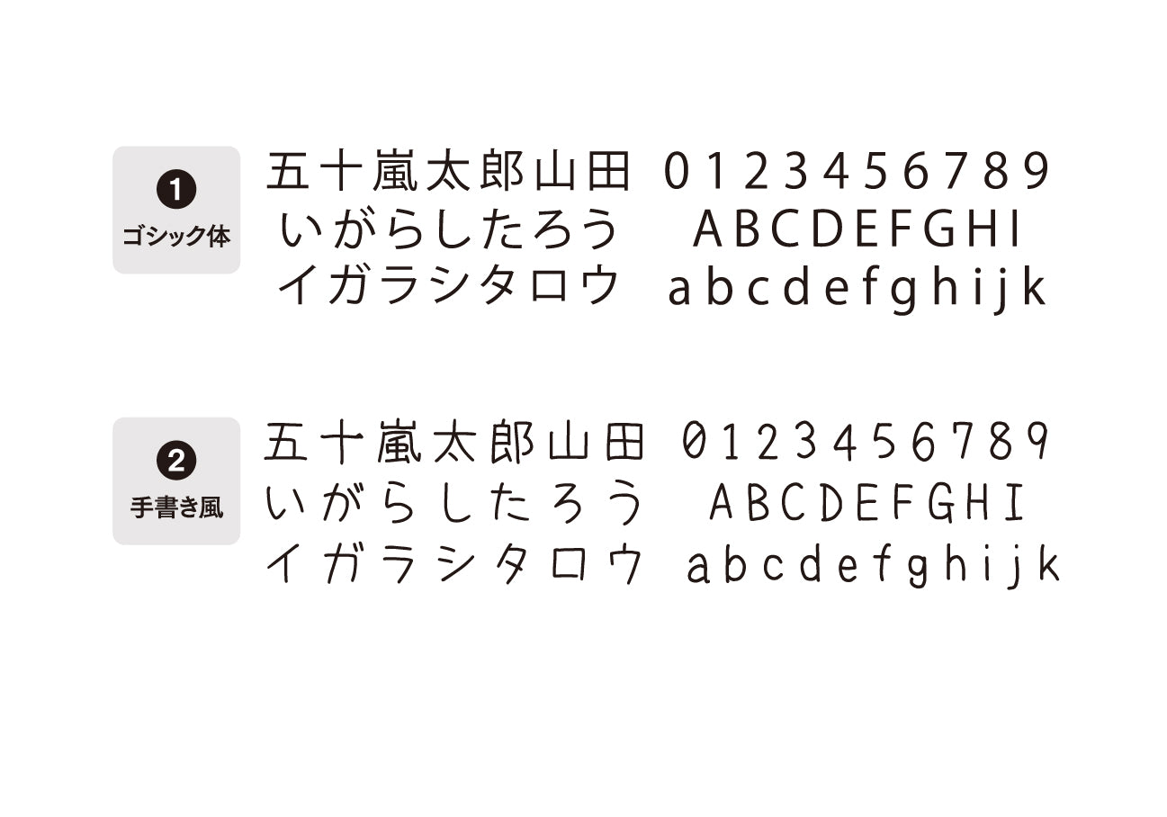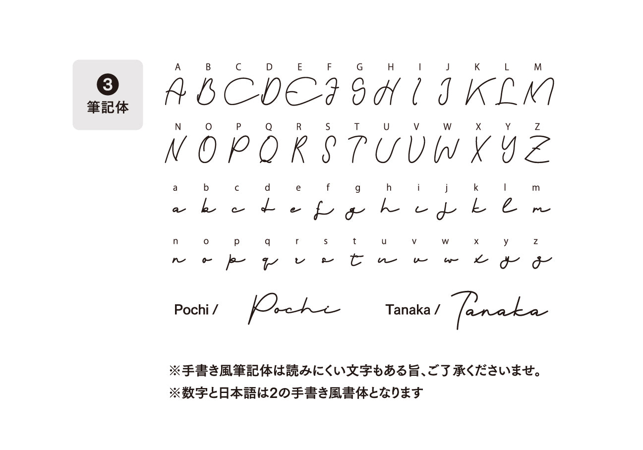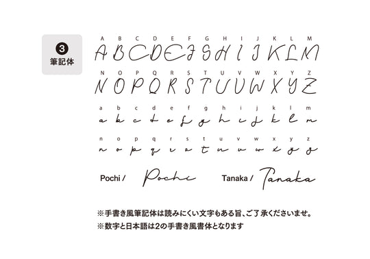 1. ゴシック体 2. 手書き風 3. 筆記体(英語のみ)